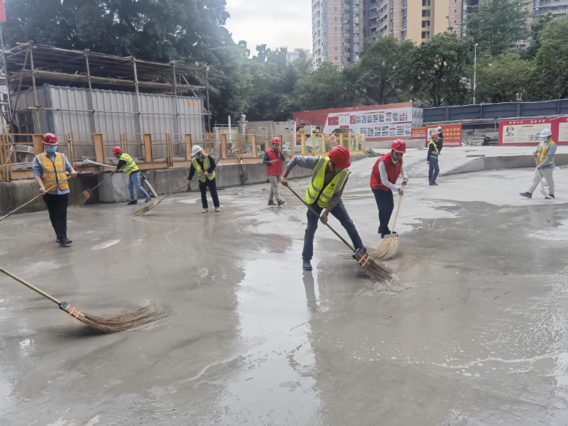 活动现场,党员志愿者对施工道路附近、基坑周边、材料堆放区等容易积水的关键区域,进行全面清扫。