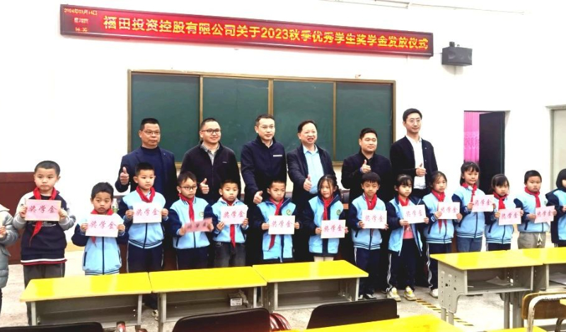 9月8日,深圳市福田投资控股有限公司组织带队来到了彭寨镇中心小学,为这里的孩子们送上“开学礼物”,向2023年春季学期成绩优异的202名同学颁发奖学金。